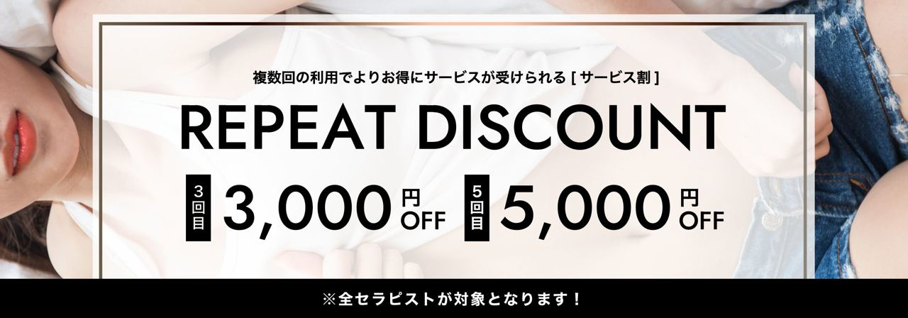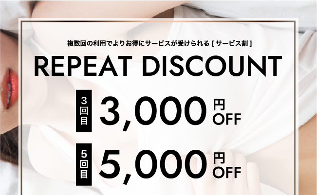 ※尚、リピート割引使用なさいますと次のご利用からリセットになりますので3回目で使用した場合は5回目での使用はできませんのでご理解の程よろしくお願いいたします。
